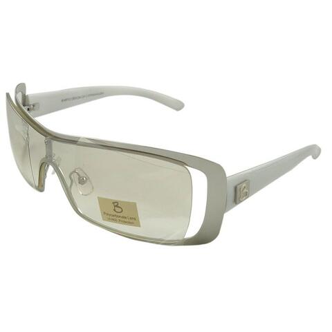 Modern Sunglasses from Barito with very wide Glasses in one and fashionable look. With a metal frame. With the B logo on the left side. Raw sunglasses for the modern woman! Comes in a Polybag.